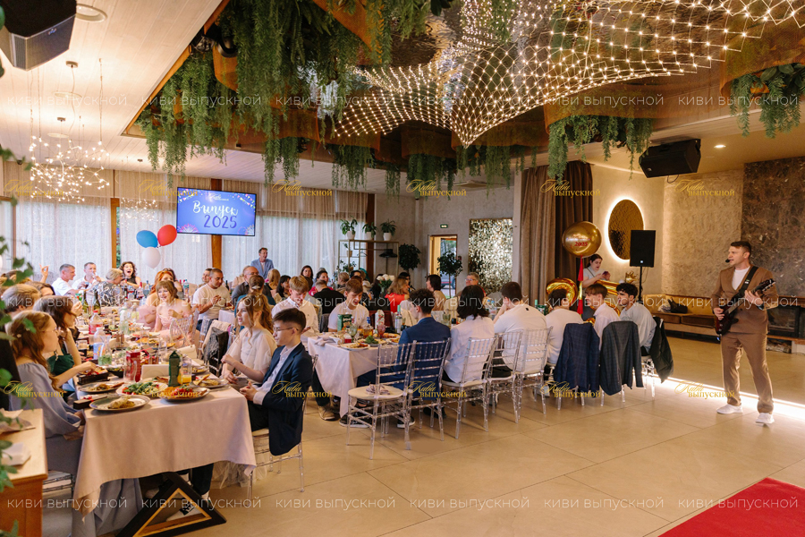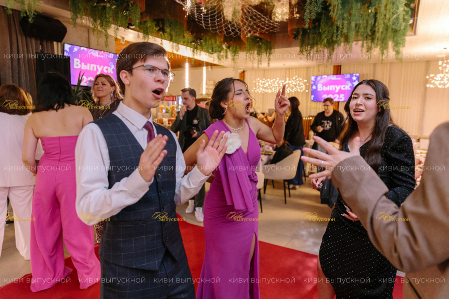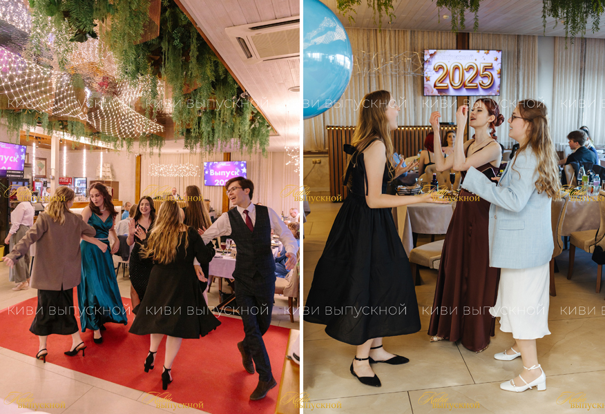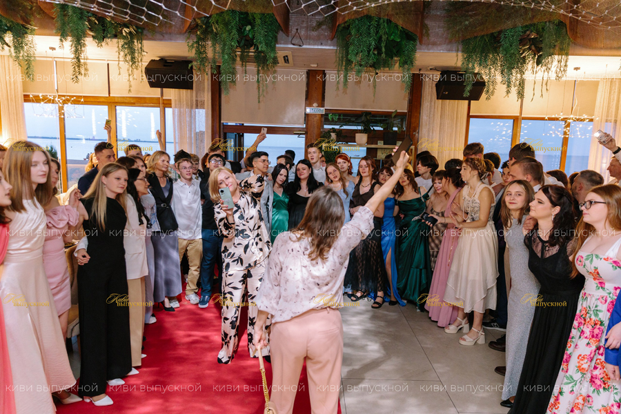 Программа в ресторане. В течение вечера фотосессии* на красной ковровой дорожке и у пресс-волла, на зеленной территории и у залива. *Репортажная фотосъемка в подарок от «Киви выпускной»
