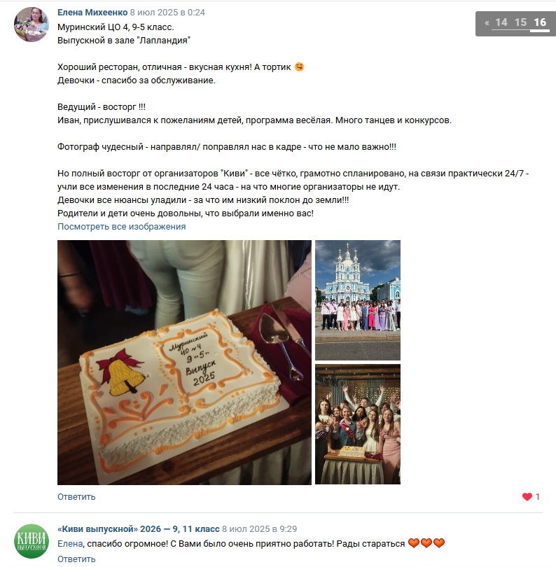 Отзывы о выпускных «Лапландия Оптима» от «Киви выпускной»
